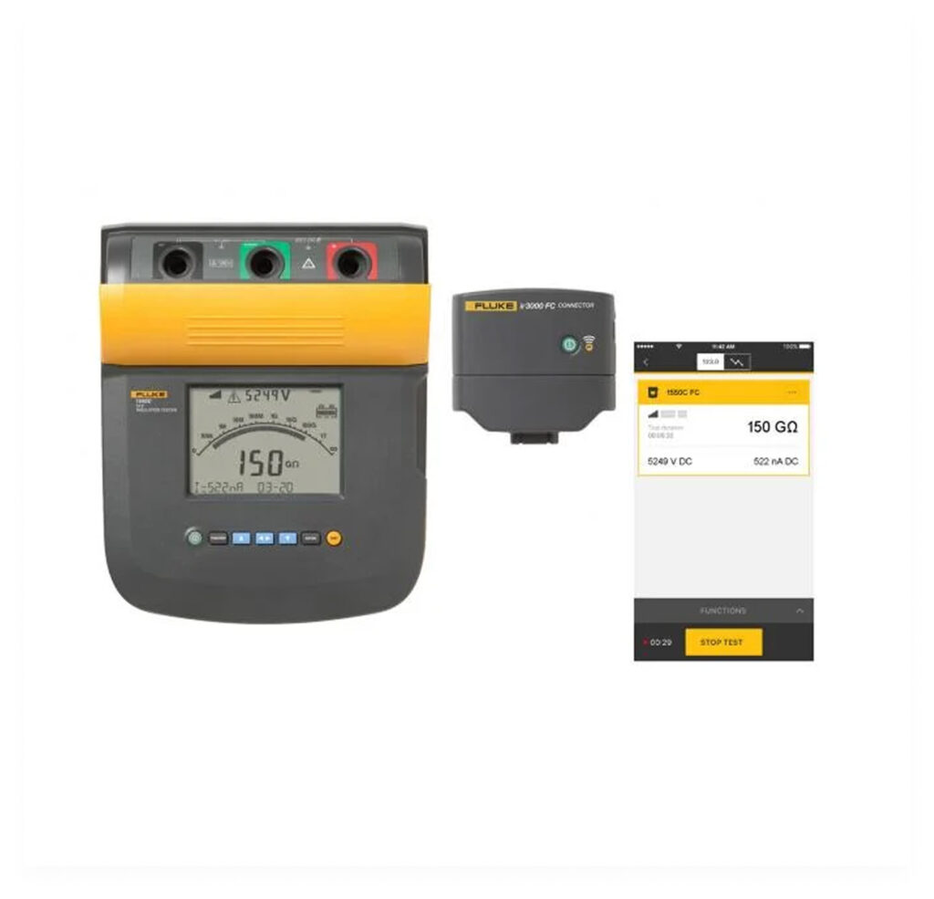 • Tensions de test jusqu’à 5 kV et gain de temps grâce au suivi des tendances sur le terrain uniquement avec Fluke Connect®