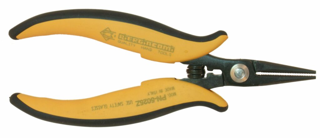 Smooth rounded long-nose pliers ideal for gripping components in tight spaces without damaging them. Tip diameter 1.8mm. Nose length 26mm. Steel thickness 5mm. Total lenght 154mm. Grip model St.