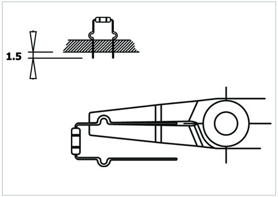 Forming and cutting pliers that can be used to create a C-shaped bend into both components leads in one step. The cutting length can be adjusted using the adjustable stop (min. 4 – max. 16). Steel thickness 10 mm. Tool length 150 mm. ESD-safe handles. Grip model St