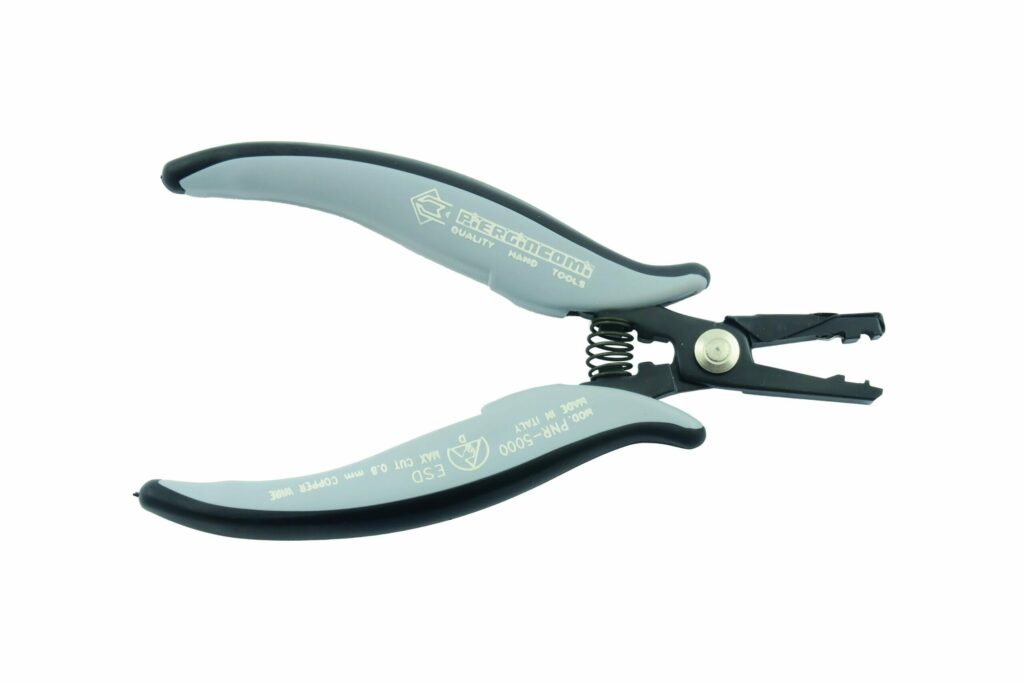 PNR 5000 D C-shape forming and cutting pliers Max cut Ø 0.8mm 20 awg 3 150mm C-shape forming and cutting pliers. ESD-safe handles.