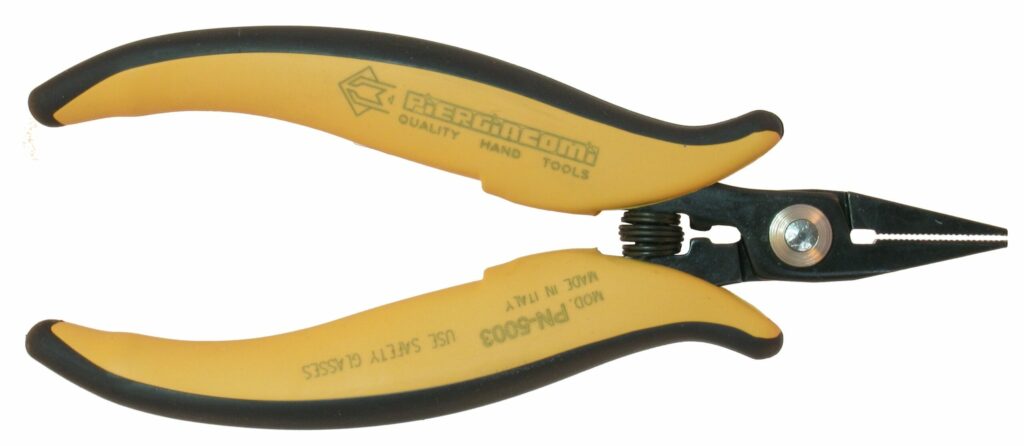Cutters PINCES Pince à bec effilé courtePince courte à bec platPince longue à bec effiléPince longue à bec platPince à bec rondPince à bec courbéPince coupante à bec rondPince d’insertion de contactPince d’extraction de goupille COUPEURS Tranchant affleurantTranchant affleurant convexeTranchant biseautéCoupe-affleurants à entretoiseCoupeuses obliquesAvec traitement par inductionCoupe-bandes à goupillesPinces à air BRUCELLES TorduESDPlatPrécisionPince à épilerPince à épiler pour la manipulation des composants et des filsPince à épiler pour la manipulation des plaquettesPince à épiler à action inversePince à épiler CMS CISAILLES ET PINCES CiseauxPinces à dénuderCisailles universelles PINCE DE FORMAGE Pince à former en forme de « C »Pince de formage en forme de « U »Pince de formage à 90°Pince de formage en forme de « L »Pince de formage à composants platsPetite pince de formage et de coupe ICPince à couper et à presserPince à tronçonner et plier SÉPARATEURS DE PCB Outils de dépanélisation à la mainOutils de dépanélisation pneumatique ORDER CODE TIP ESD ORDER CODE HRC WEIGHT (G) LENGTH (MM) NOTES PN 2003 PN 2003 D 48-50 78g 146mm Short serrated flat-nose pliers PN 2004 PN 2004 D 48-50 78g 146mm Short smooth flat-nose pliers PN 5003 PN 5003 D 48-50 98g 146mm Short serrated flat-nose pliers PN 5004 PN 5004 D 48-50 98g 146mm Short smooth flat-nose pliers ORDER CODE TIP HEAD HRC WEIGHT (G) PN 2003 Medium 48-50 78g PN 2003 Medium 48-50 78g Flat-nose pliers with short serrated jaws, suitable for gripping any type of components. Steel thickness 3 mm. Total lenght 146mm. Grip model St.Also available in the following version:– with ESD-safe handles in grey/black (code PN 2003 D) PN 2004 Medium 48-50 78g PN 2004 Medium 48-50 78g Flat-nose pliers with short smooth jaws, suitable for gripping any type of components. Steel thickness 3 mm. Total lenght 146mm. Grip model St.Also available in the following version:– with ESD-safe handles in grey/black (code PN 2004 D) PN 5003 Medium 48-50 98g PN 5003 Medium 48-50 98g Flat-nose pliers with short serrated jaws, suitable for gripping any type of components. Steel thickness 5mm. Total lenght 146mm. Grip model St.Also available in the following version:– with ESD-safe handles in grey/black (code PN 5003 D) PN 5004 Medium 48-50 98g PN 5004 Medium 48-50 98g Flat-nose pliers with short smooth jaws, suitable for gripping any type of components. Steel thickness 5mm. Total lenght 146mm. Grip model St.Also available in the following version:– with ESD-safe handles in grey/black (code PN 5004 D) Cutters PINCES Pince à bec effilé courtePince courte à bec platPince longue à bec effiléPince longue à bec platPince à bec rondPince à bec courbéPince coupante à bec rondPince d’insertion de contactPince d’extraction de goupille COUPEURS Tranchant affleurantTranchant affleurant convexeTranchant biseautéCoupe-affleurants à entretoiseCoupeuses obliquesAvec traitement par inductionCoupe-bandes à goupillesPinces à air BRUCELLES TorduESDPlatPrécisionPince à épilerPince à épiler pour la manipulation des composants et des filsPince à épiler pour la manipulation des plaquettesPince à épiler à action inversePince à épiler CMS CISAILLES ET PINCES CiseauxPinces à dénuderCisailles universelles PINCE DE FORMAGE Pince à former en forme de « C »Pince de formage en forme de « U »Pince de formage à 90°Pince de formage en forme de « L »Pince de formage à composants platsPetite pince de formage et de coupe ICPince à couper et à presserPince à tronçonner et plier SÉPARATEURS DE PCB Outils de dépanélisation à la mainOutils de dépanélisation pneumatique