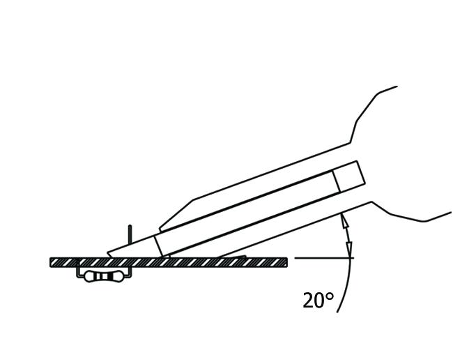 Pneumatic tool. 60° angled end flush cut. Ideal for hard-to-each areas.