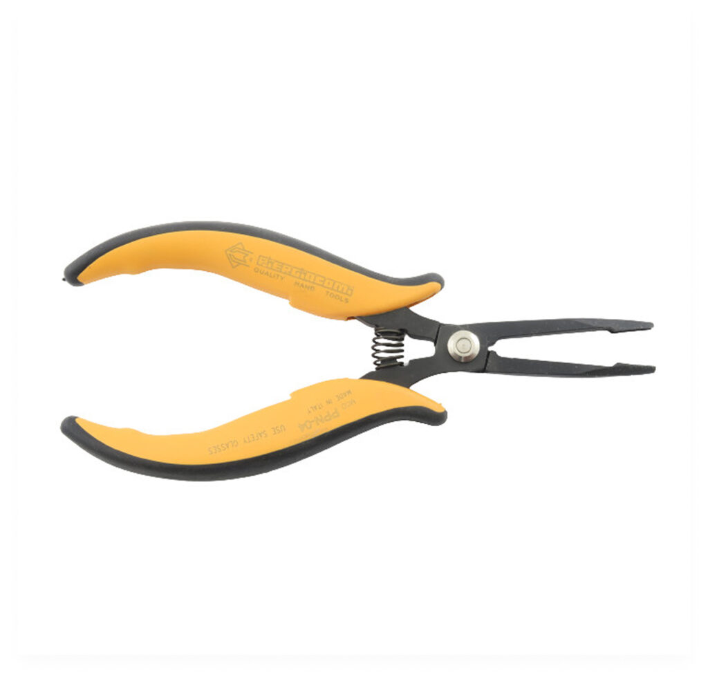 La pince longue à bec plat est un outil doté de mâchoires longues et plates, parfait pour saisir, maintenir ou plier des pièces dans des endroits difficiles d’accès.