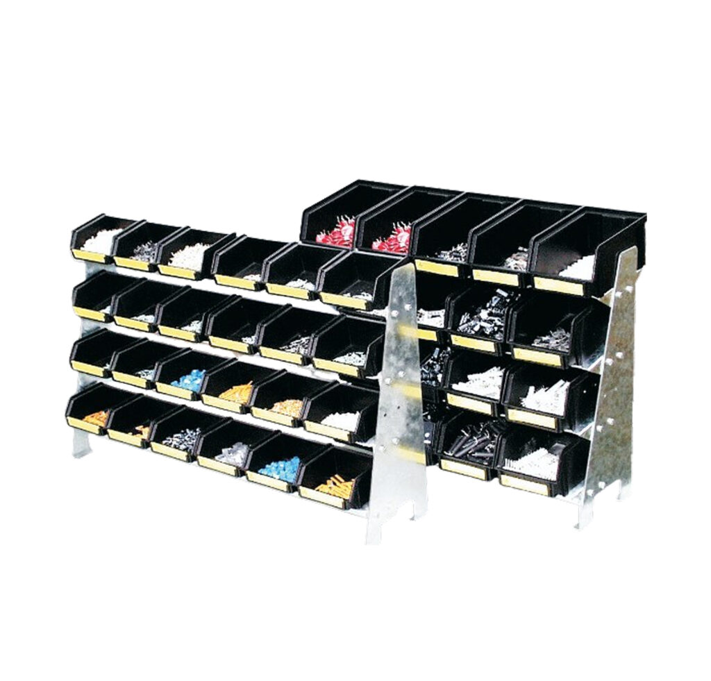 Les bacs ouverts TECOFIX en polypropylène conducteur servent à stocker des pièces accessibles à tout moment.