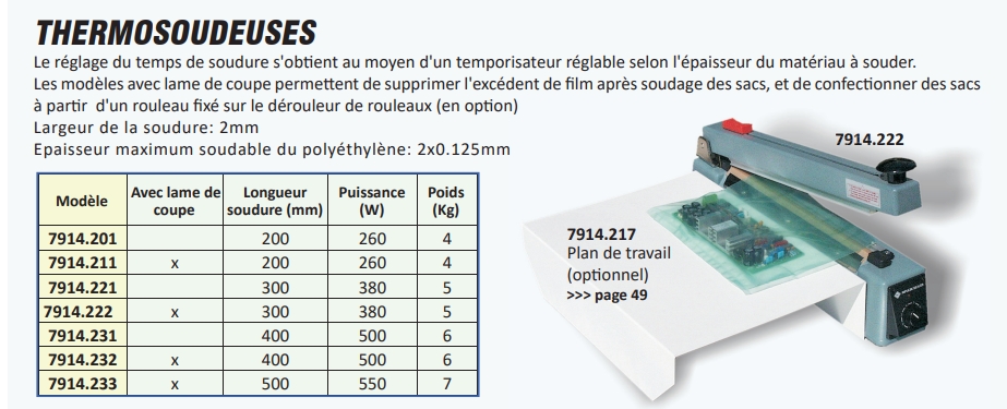Epaisseur maximum soudable du polyéthylène : 2×0.125mm